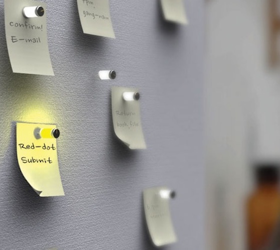 Ľudia si robia poznámky na bločky, aby si zapamätali dôležité veci, ktoré musia urobiť. Avšak niekedy sa dá zabudnúť tak či onak, hlavne keď tých poznámok je veľa. Na to slúži sada svietiacich pripináčikov, ktoré sa rozsvietia, keď je potrebné danú úlohu na poznámke vykonať a tým pádom vzniká na vašej poznámkovej ploche prehľadnosť.