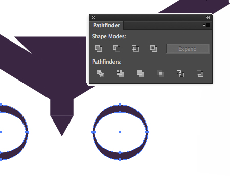 Pokračujte v kreslení elipsy na výrobu oka. Nakreslite ďalšiu elipsu, ktorou prekryjete kruh, duplikujte tento tvar a presuňte ho na opačnú stranu. Z oboch vybraných položiek, použite voľbu Exclude