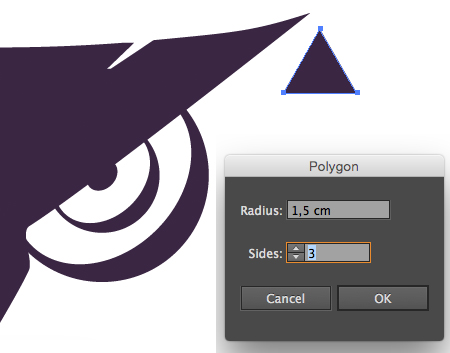 Nakreslite trojuholník pomocou nastroja polygon. Posunieme si kotevné body pomocou Direct Selection (klávesová skratka A) a zaoblime ich pomocou nastroja Convert anchord point tool (klávesová skratka Shift+C).