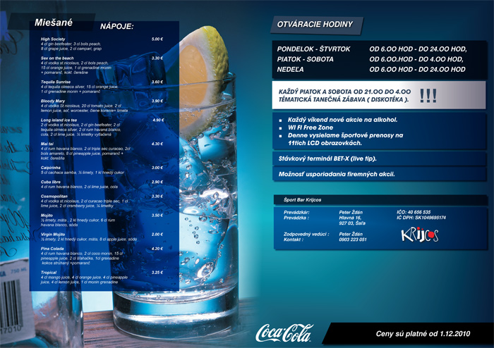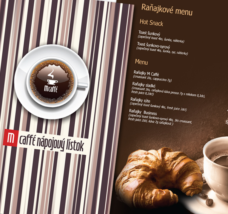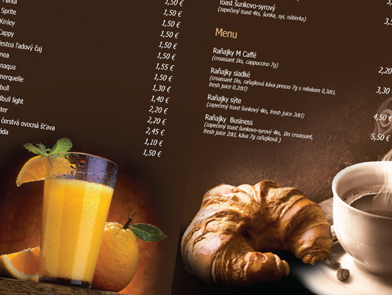 Nápojové a jedálne lístky sú jedným z ukazovateľov úrovne podniku. Prehľadnosť ponuky je na prvom mieste. Grafický návrh odráža atmosféru podniku. Riešením preto určíte nie je ponuka vytlačená z MS Wordu. Aj týmto spôsobom Vám umožníme zvýšiť úroveň Vášho podniku.
